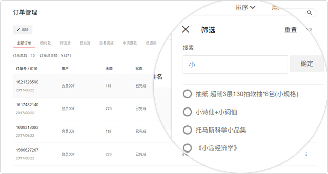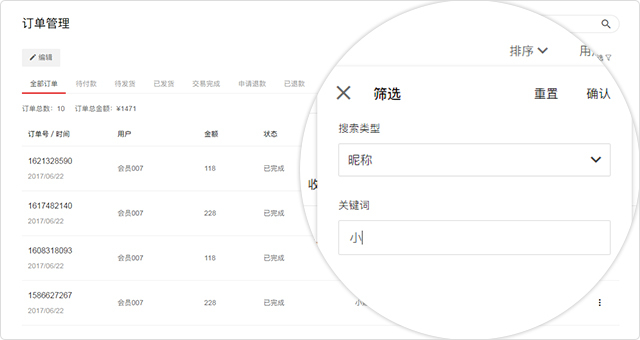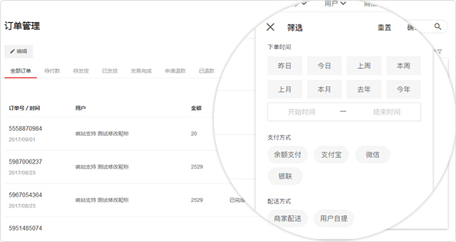 订单管理的筛选