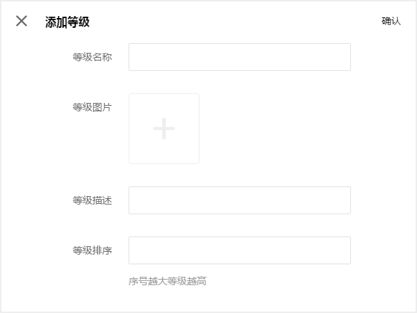 设置中包含等级名称、等级图片、等级描述、以及等级排序四个基础信息(图1-1)。