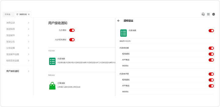 在开启的情况下,APP推送需网站有配套的APP才能生效,短信通知需要购买验证通知短信才能生效。