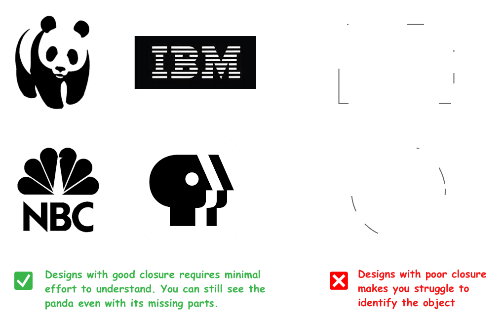 不完整的主体,或是有留白导致不完全封闭的物体,会被大脑感知为是完整的物体,大脑自动填补了空白处。设计师可以利用这条封闭性原则去创造引人注目的图形。