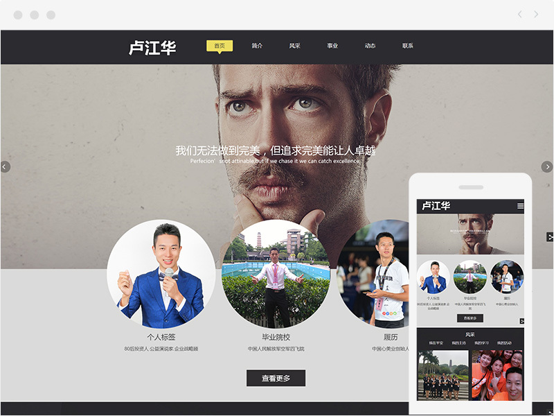 一款个人类型的官网卢江华:一名中国平安的理财规划师和综合金融客户经理,专业的保险金融知识,同时集主持,演讲,性格色彩传道者多重身份跨界的斜杠青年,投资自己,我相信唯有放大自己的格局,人生才能不可思议!站上属于自己的舞台,绽放人生的精彩!